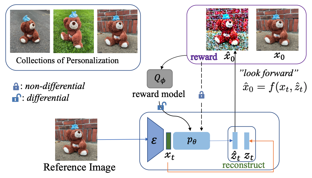 Powerful and Flexible: Personalized Text-to-image Generation via Reinforcement Learning