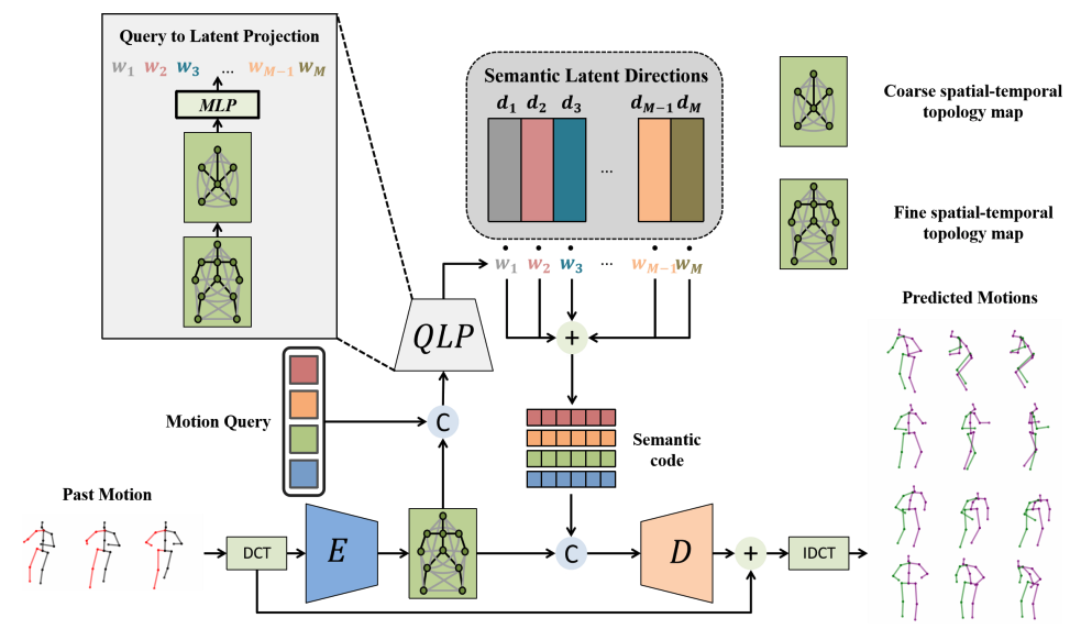 Learning Semantic Latent Directions for Accurate and Controllable Human Motion Prediction